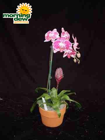 1 Orchid & 1 Bromeliad in a 6 in clay pot.